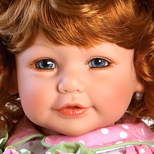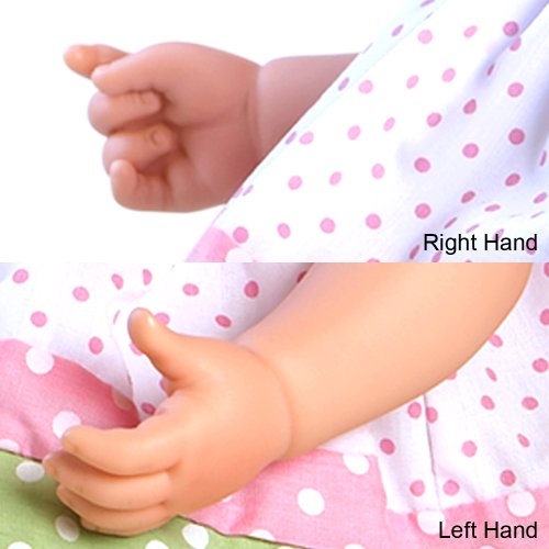 20 inches from head to toe, made of baby powder scented high quality vinyl toddler doll with moveable head, arms and legs