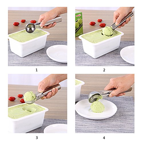 HaloVa Ice-Cream Scoop Multi-function Stainless Steel Watermelon Scooper, Digging Spoon with Trigger for Ice Cream and Fruit, Good Kitchen Helper