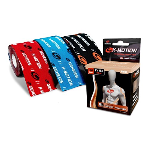 Studio : Genesis Bowling Publisher : Genesis Bowling Binding : Misc. Product Description This is a 4 Color Pack. Purchase this pack and save money over buying all 4 colors individually. Kinesiology Pre-Cut Tape with Copper Infuzion K-Motion with Copper Infuzion is an innovative Kinesiology tape solution for treating and preventing common repetitive bowling injuries such as wrist, forearm, elbow, shoulder, knee pain and more. K-Motion is the first tape of its kind with copper infused into a highly elastic synthetic / cotton hybrid material, and has proven highly effective for bowling's repetitive motion. Applied correctly, it provides pain relief, increased support and stability for injured or weakened muscles, delays fatigue and can ease joint soreness without sacrificing freedom of movement or comfort. K-Motion with Copper Infuzion is very easy to apply, is anti-microbial, and can be worn for 3-5 days at a time, providing days of relief.Relieve Pain, Reduce Fatigue, Improve Performance, Cause a K-Motion For all common injuries and more... Wrist / Fingers,Carpal Tunnel,Forearm,Elbow,Bicep/Tricep,Shoulder/Rotator Cuff,Neck Strain,Lower Back,Quad/Thigh,Knee Pain/Stability,Hamstring/Calf Strain,Ankle Sprain/Stability,Achilles Tendonitisand More... Available in Rolls of 20 Pre-Cut Strips or Uncut. This product is the Un-cut roll. Sizes: Pre-Cut Strips - 2 inches x 10 inches | Uncut Roll - 2 inches x 16.6 inches 0