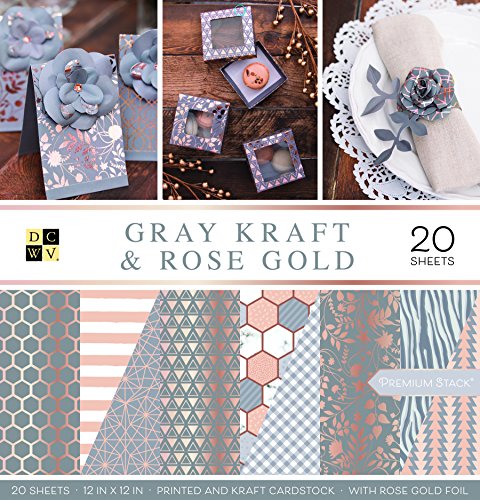 American Crafts Card Stock 12"X12" Grey Kraft and Rose Gold Premium Printed Stack