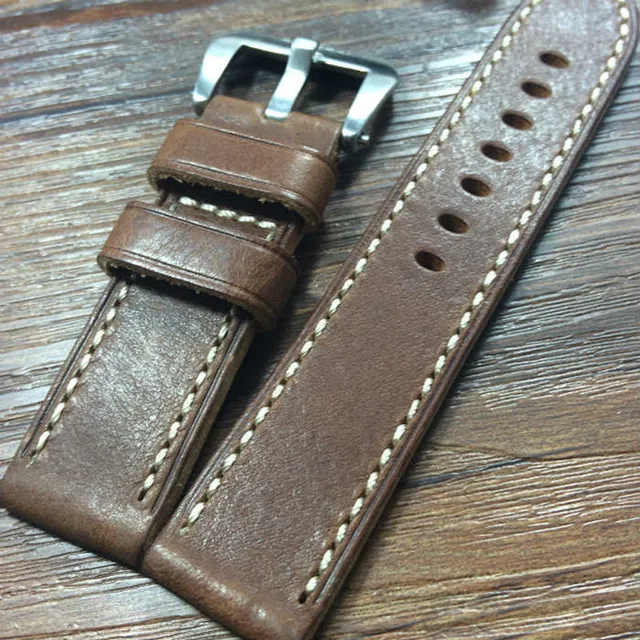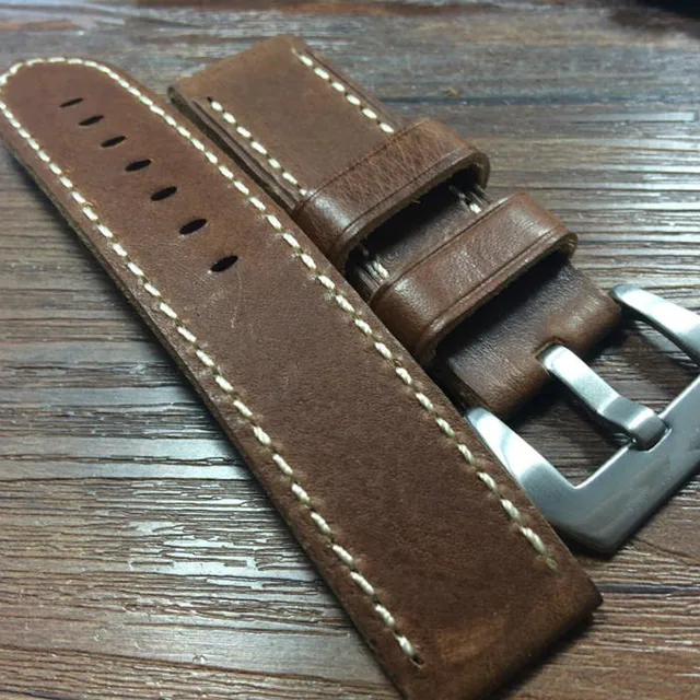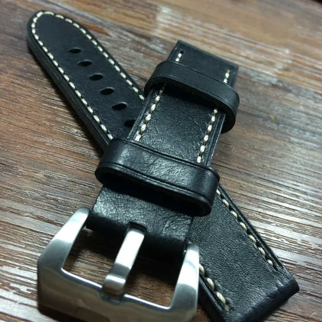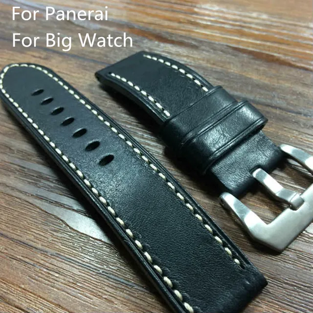 | [해외]수제 송아지 가죽 블랙 브라운 24 미리메터 26 미리메터 두꺼운 스트랩 벨트, 복고풍 가죽 손목 Pam 큰 시계 |