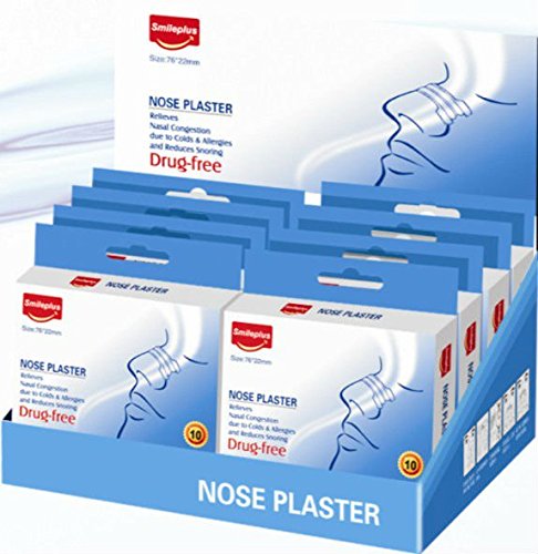 -. Binding : Health and Beauty -. Brand : Smileplus -. EAN : 0754242286219 -. Feature : Standard Size, Pack of 10. / Please avoid using in places where there is too much oil/sweat exposure / Helps reduce disturbed sleep for self & others, Most economical pack for your average monthly requirement. / Easy to Install (Hold on to it once stuck onto nose for sometime before you leave for bed) / NO RETURNABLE. -. IsAdultProduct : 0 -. Label : Smileplus -. Manufacturer : Smileplus -. MPN : NA9847622 -. PackageQuantity : 20 -. PartNumber : NA9847622 -. ProductGroup : Health and Beauty -. ProductTypeName : HEALTH_PERSONAL_CARE -. Publisher : Smileplus -. Studio : Smileplus -. Title : Smileplus Anti Snoring Nasal Strips (Pack of 10) (20) -. UPC : 754242286219