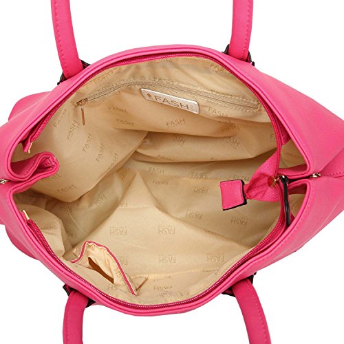 Take a look at this amazing Tote Handbag by FASH. It's exterior is made using top quality man-made leather and it has a crosshatched texture all over it, giving it a sophisticated look. What's truly amazing about this handbag is its dual rolled handles which which comes with a band around it keeping them together. This leaves you with two interesting options of carrying it. We understand that comfortably in carrying a handbag plays an important role and hence we've designed our handbag in this manner.