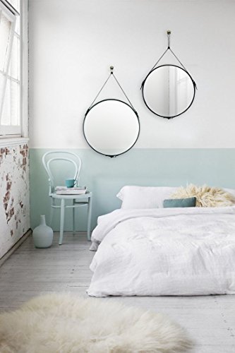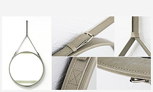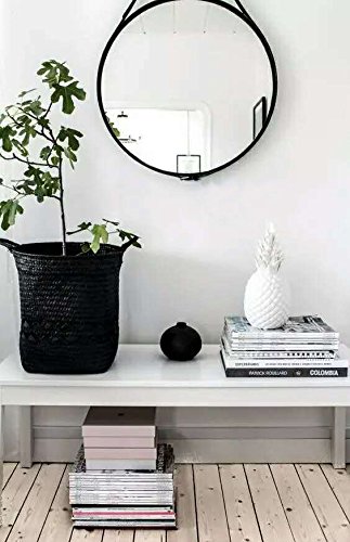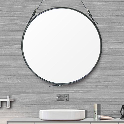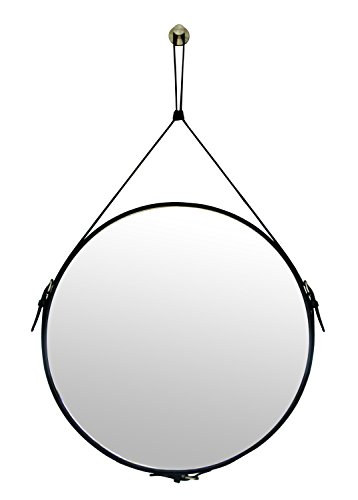 Ms.Box Faux Leather Round Wall Mirror Decorative Mirror with Hanging Strap, Diameter 19.7 inch, Black