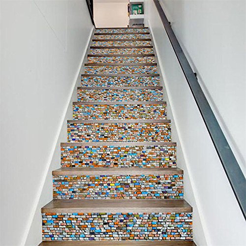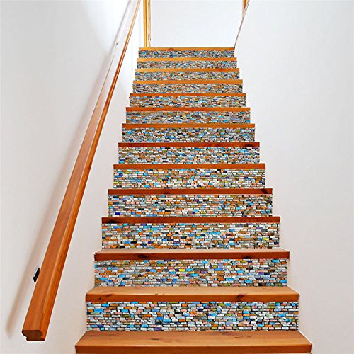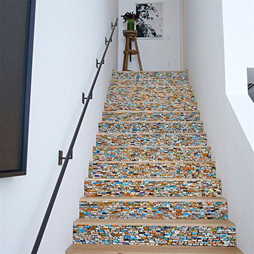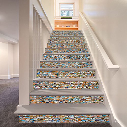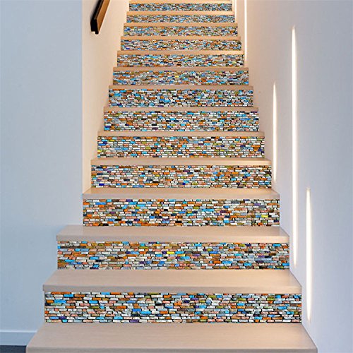AmazingWall Colorful Stone 3D Mosaic Stair Sticker DIY Home Decor Removable Mural Waterproof 7.1x39.4" 6PCS/SET