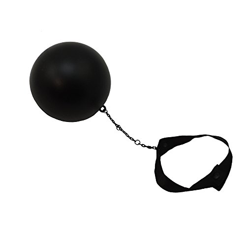 -. Feature : Black Ball & Chain / Satin Ankle/Wrist Band w/ Button Closure / Made From Ultra-Lightweight Plastic / Ball Measures 4" Diameter; Chain Measures 4 1/2" Long / Great For Costume Parties & Bachelor/Bachelorette Parties!