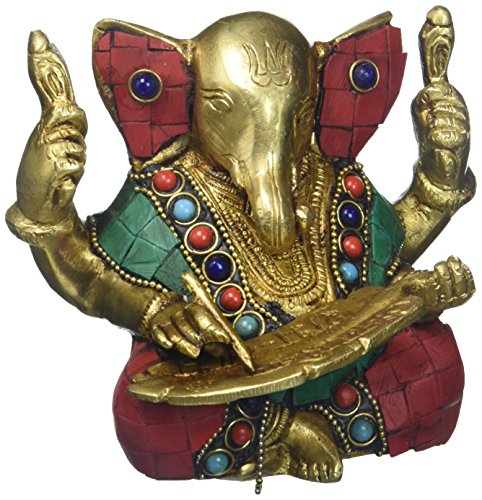 CraftVatika Ganesha Statue Brass Hindu God Ganesh Subh Labh Writing Sculpture Diwali Puja Idol Gift