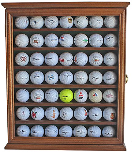 This golf ball display case would be great way to display memorable shots, club championships/ tournaments, or autograph balls. This would also make a great gift for golf-lovers. Felt background (dark green color) to create a lovely display. Dimples on the shelves to secure the balls. Super fine smooth surface. Brass hinges, door latches, and wall brackets to hang (wall mounted). Glass door cover to protect from dust and damage.