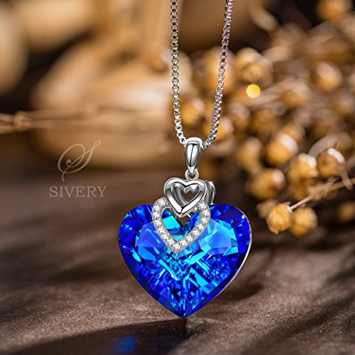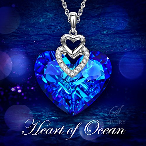 Sivery "Heart of Ocean" Women Heart Necklace with Swarovski Crystal, suitable gifts for Valentine's Day, Christmas, Anniversary, Birthday.AttentionAway from chemicals