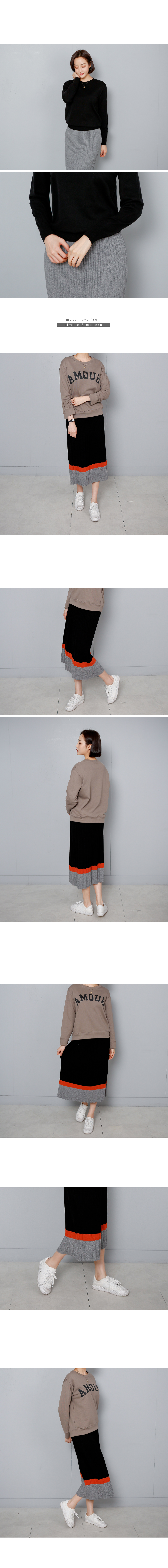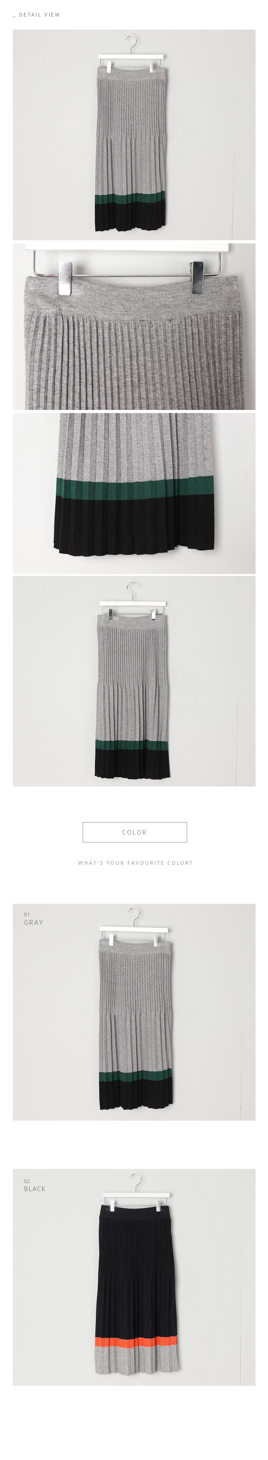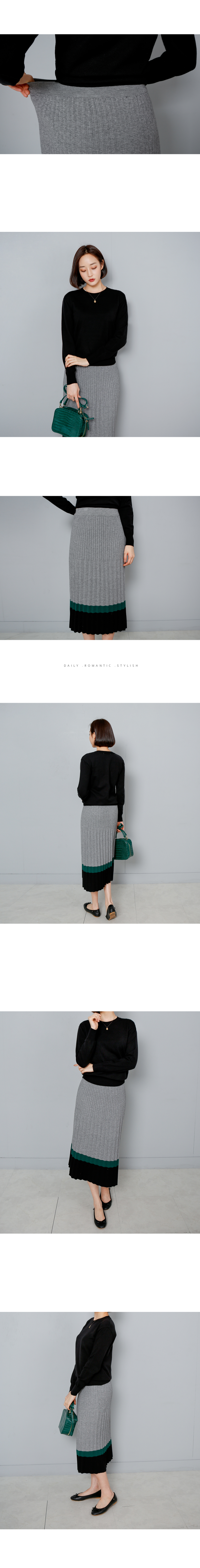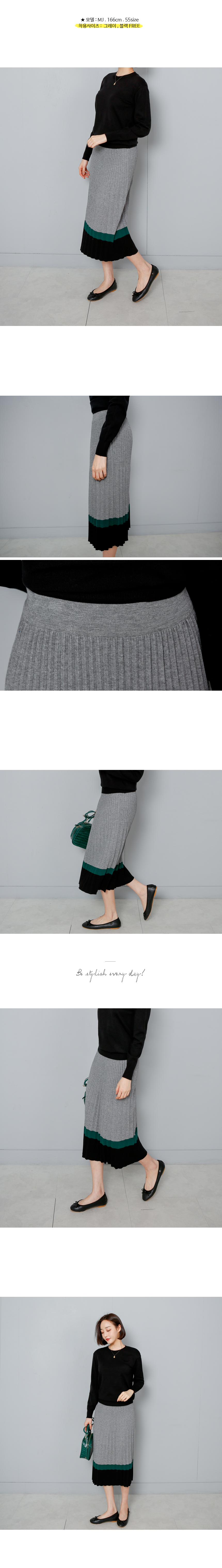 플리츠 컬러 배색 니트 스커트