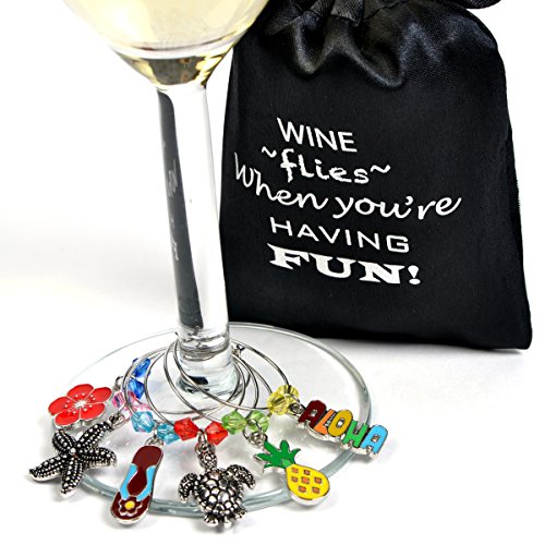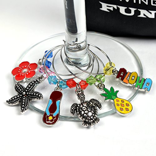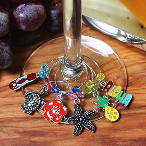 -. Feature : EASY-TO-USE! These custom designed "HAWAIIAN" wine glass charms are easy to attach utilizing our easy-to-hook hoops that were developed to remove and apply easier than other brands. When installing or removing just grab both hoop pieces and gently pull apart to hook or unhook. When finished using just insert charms back into the custom "Wine Flies When You're Having Fun" storage bag until your next event or gathering. Great for Champagne glasses too!! / ELIMINATE GLASSWARE CONFUSION AND HAVE FUN! These delightful "HAWAIIAN" wine glass charms not only are fun but they also add flare and generate excitement, which ultimately leads to stimulating guest conversations during and even after your event or gathering. / GREAT GIFT FOR ALL OCCASSIONS! All of Cork & Leaf 's wine glass charms are packaged to be perfect for Wine Lover, Hostess, Birthday or Housewarming Gifts, Stocking Stuffers or especially Christmas and Holiday Gifts. / 100% HAND PAINTED! Our complete lineup of wine glass charms from Cork & Leaf are 100% hand painted and are finish assembled thru our family owned facility located here in the USA. Here at Cork & Leaf has been our goal since inception to provide the highest quality wine accessory offerings at the most competitive price. / ORDER TODAY AND IMPRESS YOUR FRIENDS! All of Cork & Leaf 's products come with our 100% Lifetime Guarantee against manufacturing defects. No risk for you, the customer when ordering from a company you can trust.