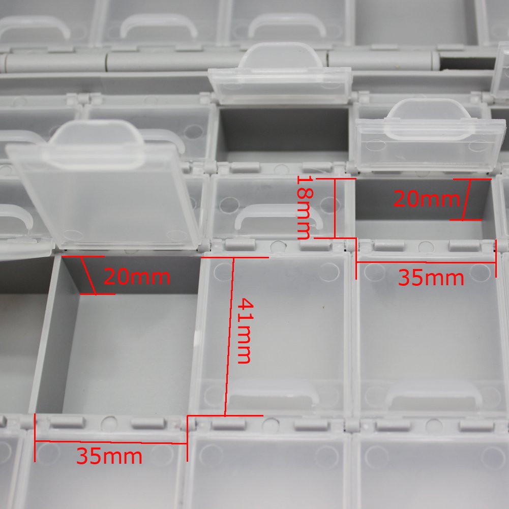 It is a parts case designed specifically for storage and arrangement of mixed chip resistors, chip capacitors, electrolytic capacitors, board fixing screws and so on.