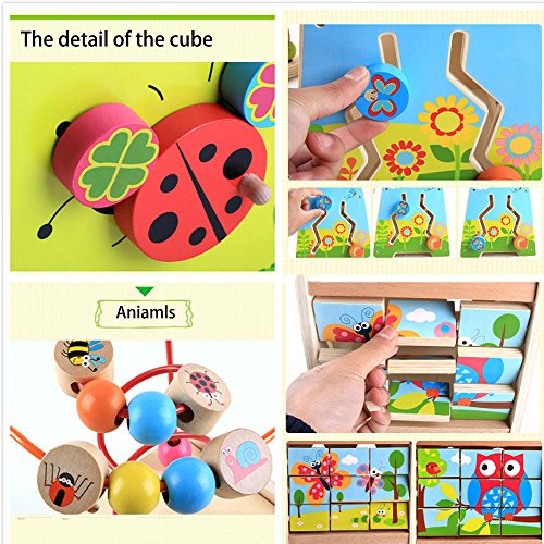 【Multi-function Intelligence Box】: Multiples sides of playing, include a bead coaster, shape sorter, animal puzzle, animal race, and rock the ladybird. Your child will spend hours of fun and learning doing the different activities