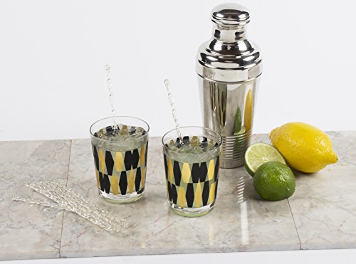 Party Partners 12 Count Twisted Sticks Glitter Happy Hour Vintage Style Cocktail Stirrers, Clear/Gold