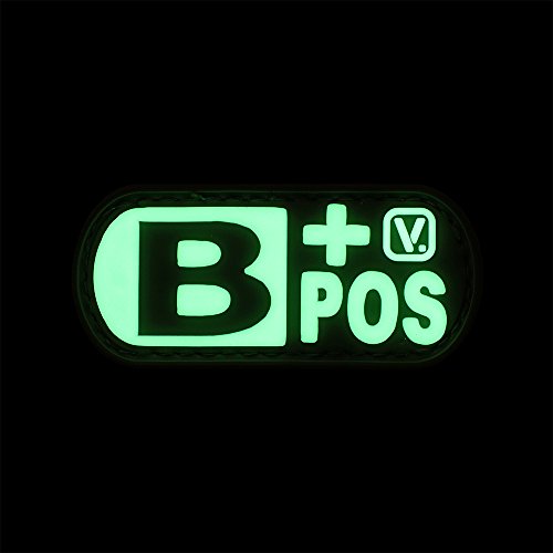 -. Feature : Easily display your blood type on clothing, tactical or medical gear, day or night! / Size: 2.25" (W) x 1" (H) Oval / Super bright glow-in-the-dark can glow for up to 8 hours in darkness. / Rounded corners prevent snagging & hook fastener sewn on backside attaches to any loop surface