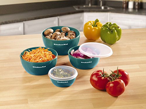 This KitchenAid Prep Bowl Set is perfect for prepping and storing all your vegetables, herbs and other ingredients before you begin cooking. This set of four prep bowls includes 1-, 2-, 3- and 4-cup sizes. These bowls feature clear plastic covers to easily identify contents. These prep bowls are constructed of durable, lightweight plastic. These bowls nest together when not in use for ease of storage. These prep bowls are dishwasher safe for fast and easy cleanup.Feature