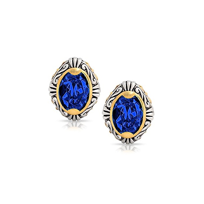 [blink 쥬얼리] Bling Jewelry사파이어 블루 반짝반짝 크리스탈 바리 스타일 2톤 클립 귀걸이 [임포트]