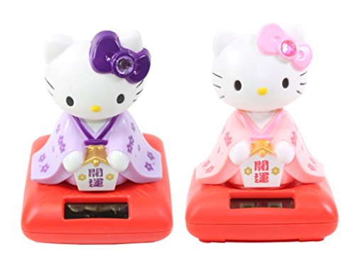 -. Binding : Toy -. Brand : We pay your sales tax -. EAN : 4861653173390 -. Feature : Size: 4" (H) X 2.75" (L) Color: Pink & Purple Material: Plastic Individually packed in a see-through packaging. / Great gift or decorative statue to put in office, front door, living room!! / Eco-friendly. Batteries are not needed. Hassle-free. Head nodding when light is directed at the solar strip. -. IsAdultProduct : 0 -. Label : Wepayyoursalestax -. Manufacturer : Wepayyoursalestax -. ProductGroup : Toy -. ProductTypeName : TOYS_AND_GAMES -. Publisher : Wepayyoursalestax -. Studio : Wepayyoursalestax -. Title : Set of 2 Cute Hello Kitty in Purple & Pink Kimono Holding Lucky Ema Solar Toy Home Decor Gift