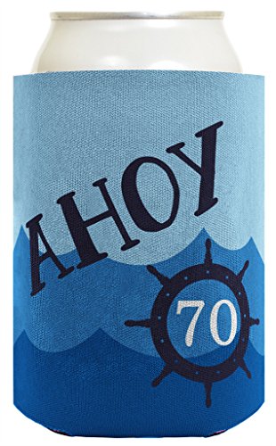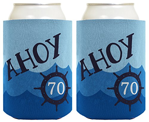70th Birthday Gifts For All Funny Beer Coolie Ahoy 70 Sailing Boating Nautical Gift 2 Pack Can Coolie Drink Coolers Coolies Ocean