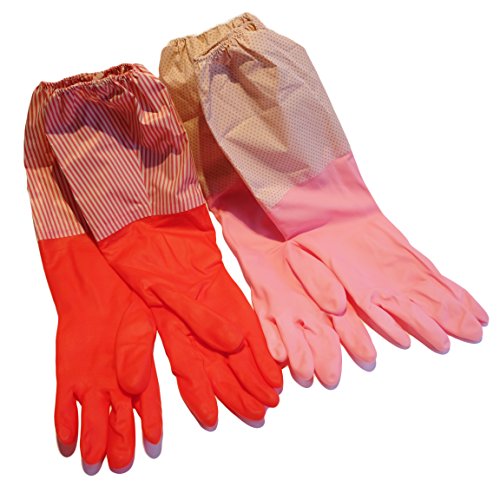 Kitchen gloves | Housework gloves | Set of 2 Pairs| Cleaning gloves | Laundry gloves | Dishwashing gloves | Thickening plus velvet | Warm winter (red-pink)