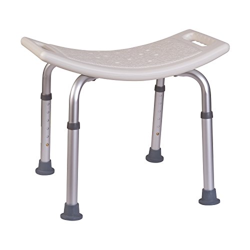 - Feature : This compact shower bench is great for smaller bathtubs or shower stalls. Also works well as a shaving stand or vanity stool. / Provides added stability in the bath or shower; ideal for those with limited mobility or those who can't stand long; sturdy stool supports up to 325 pounds yet weighs only 5 pounds. / Comfortable contoured plastic seat has drain holes to prevent water from collecting. BactiX antimicrobial protects against odors, molds, stains and other bacteria including Staph and E.coli / It's easy to adjust the height from 14 to 21 inches in 1 inch increments. / Flared rust-proof aluminum legs with slip resistant rubber tips give you stability on wet surfaces.