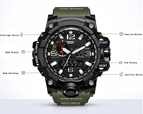 -. Title : Bounabay Men's Military Digital Sport Watch Water Resistant Outdoor LED Back Light Display