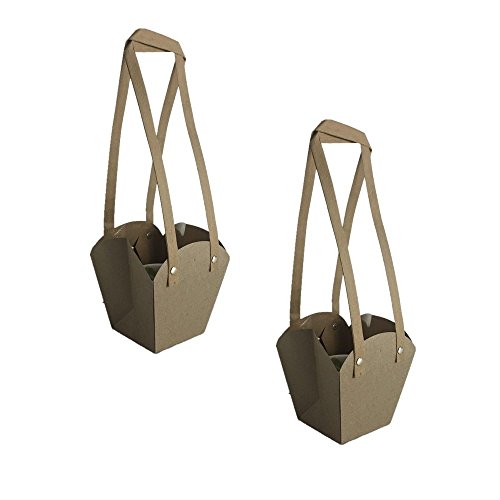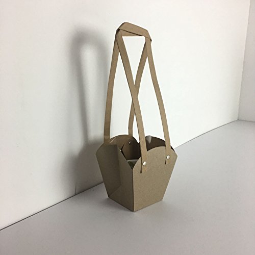 Chris.W 4Pcs Waterproof Kraft Paper Gift Favor Bags w/ Long Handle for Bonsai/Greenery/Succulent Plants/Flowers/Candy - Wedding/Bridal Showers/Anniversary Gifts Holder - Medium - Brown