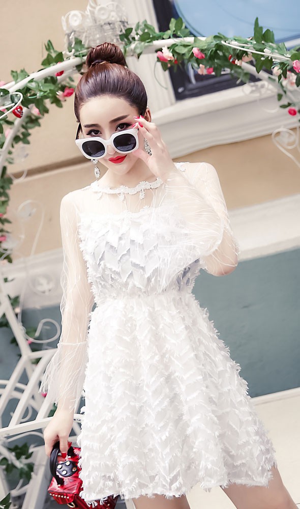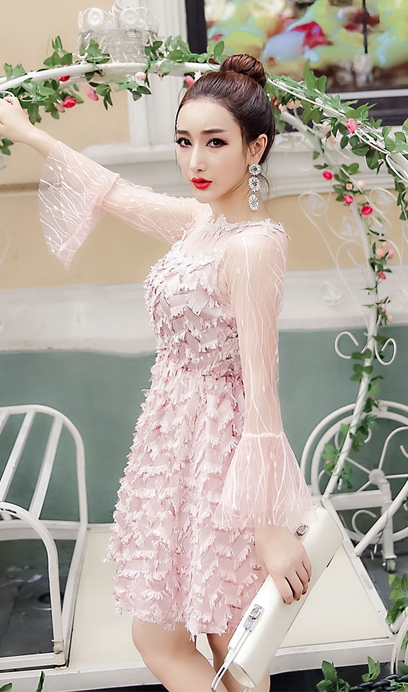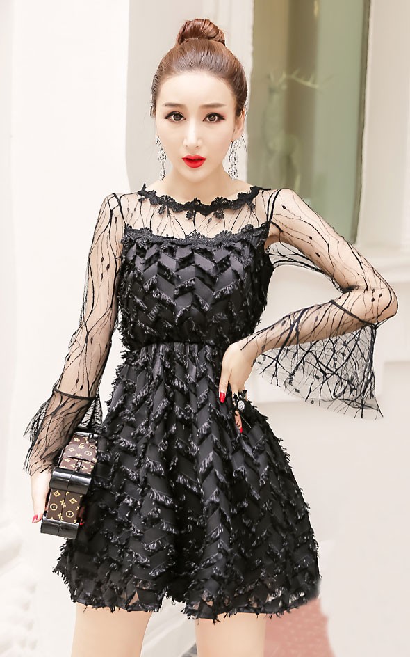 | 商品名 | □シースルーチュール切替フリンジ付 フレアスリーブAラインミニパーティードレス全3色FYQ297504#e755e757【予約販売12月下旬より順次発送予定】 【送料無料】Aラインミニワンピース パーティードレス シースルーチュール切替 細かいフリンジ付 フレアスリーブ |