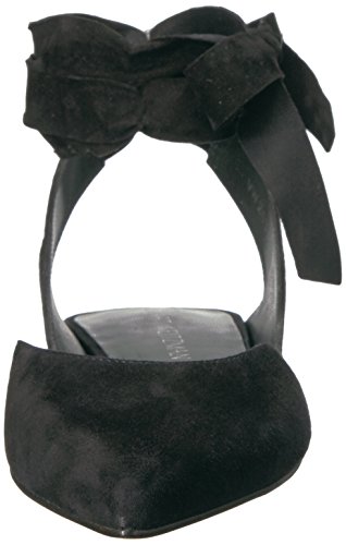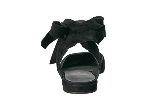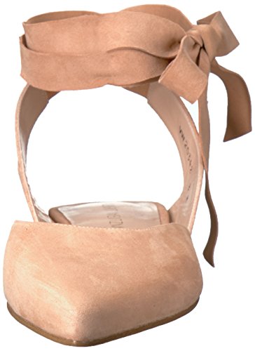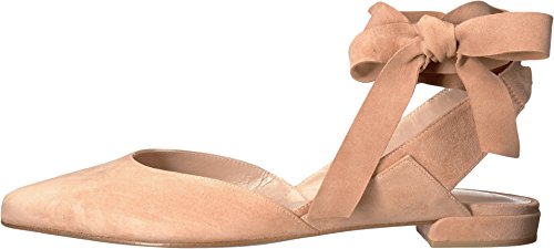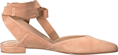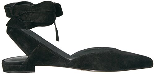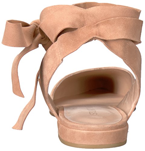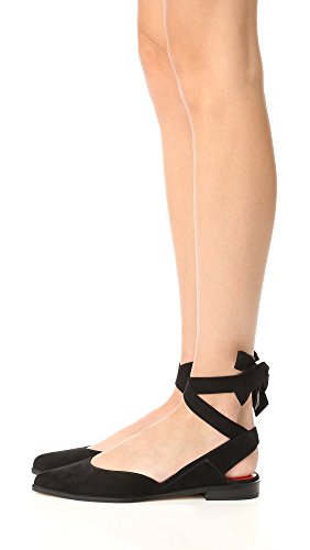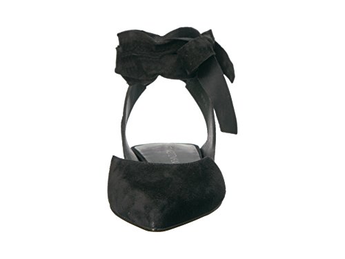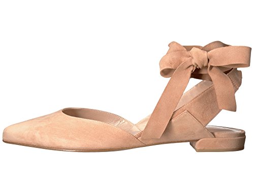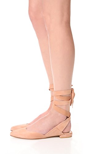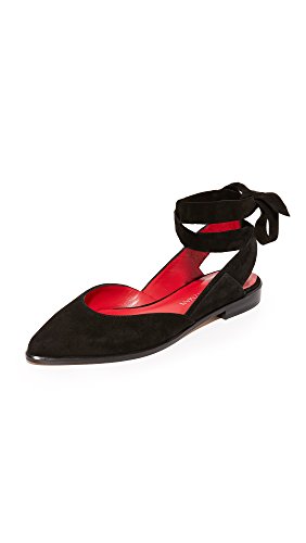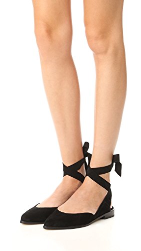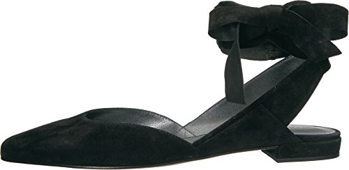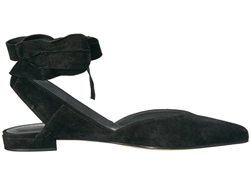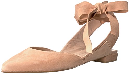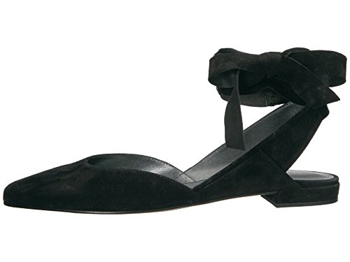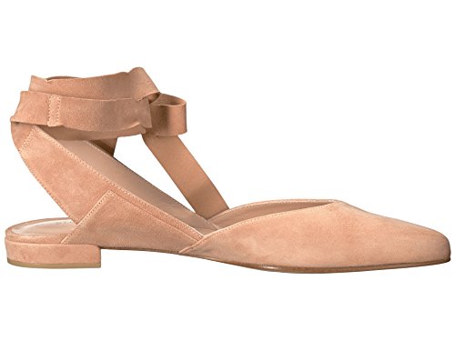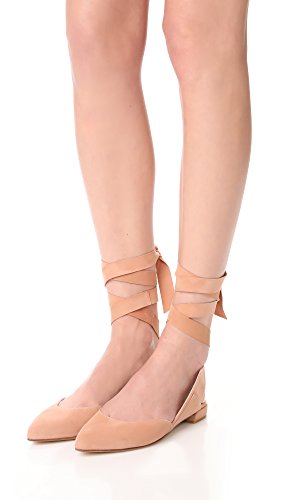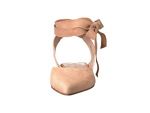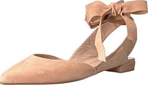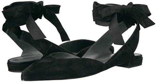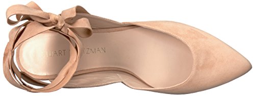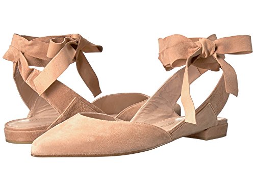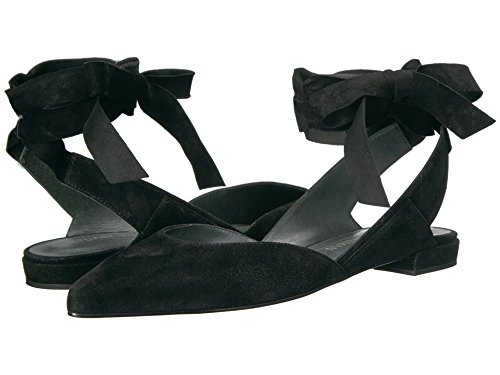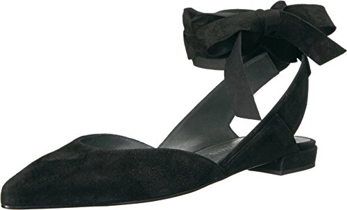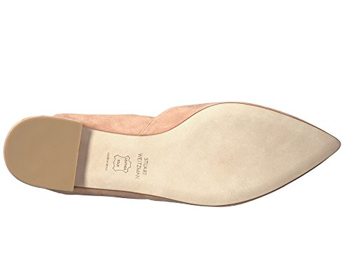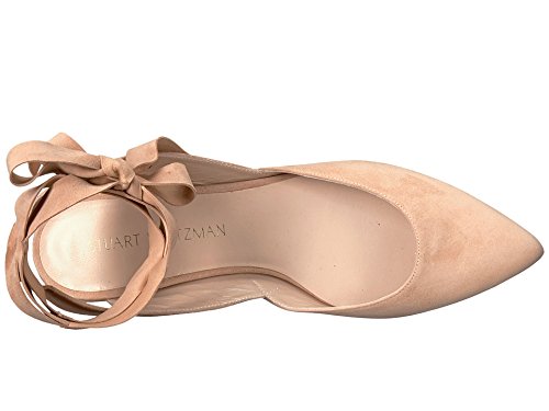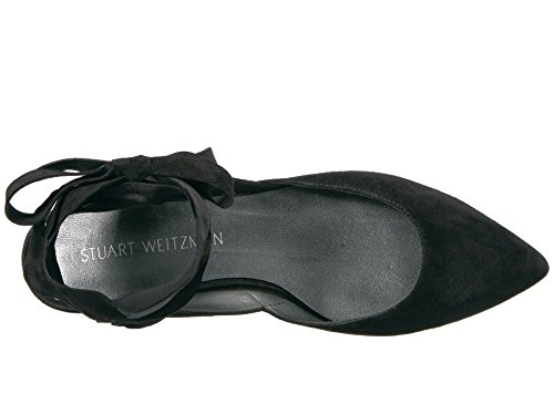Product DescriptionPanels of luxe suede lend a layered look to these pointed-toe Stuart Weitzman flats. Wide straps wrap the ankle. Low, stacked heel and leather sole.0