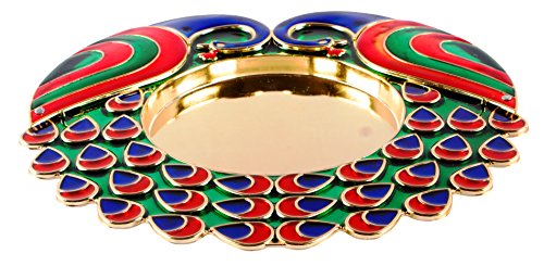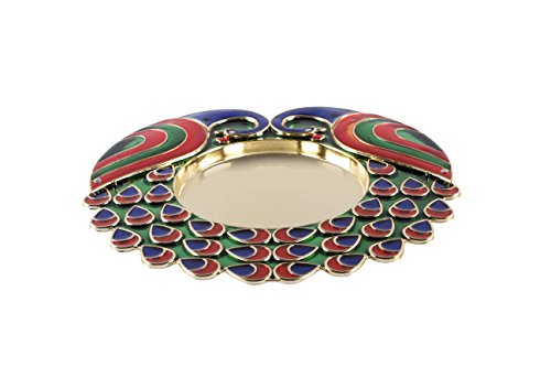 Bombay Haat Big Size Designer Peacock Pooja Thali Rakhi Platter Engagement Ring Platter With 2 Attached Kumkum Holders