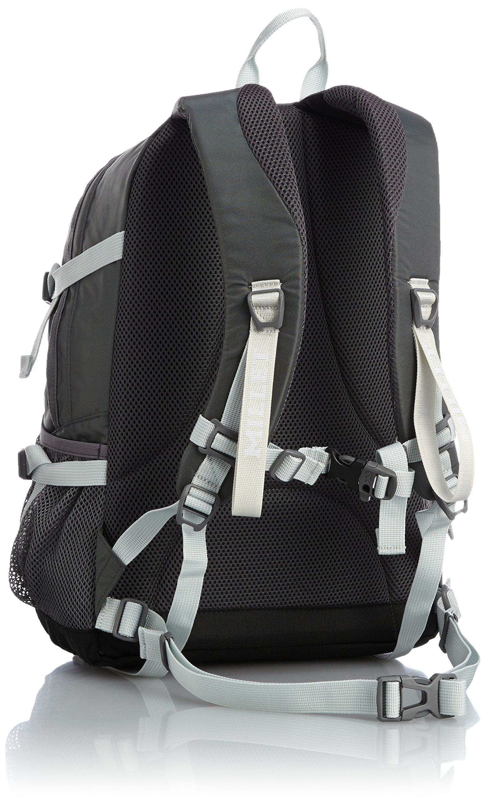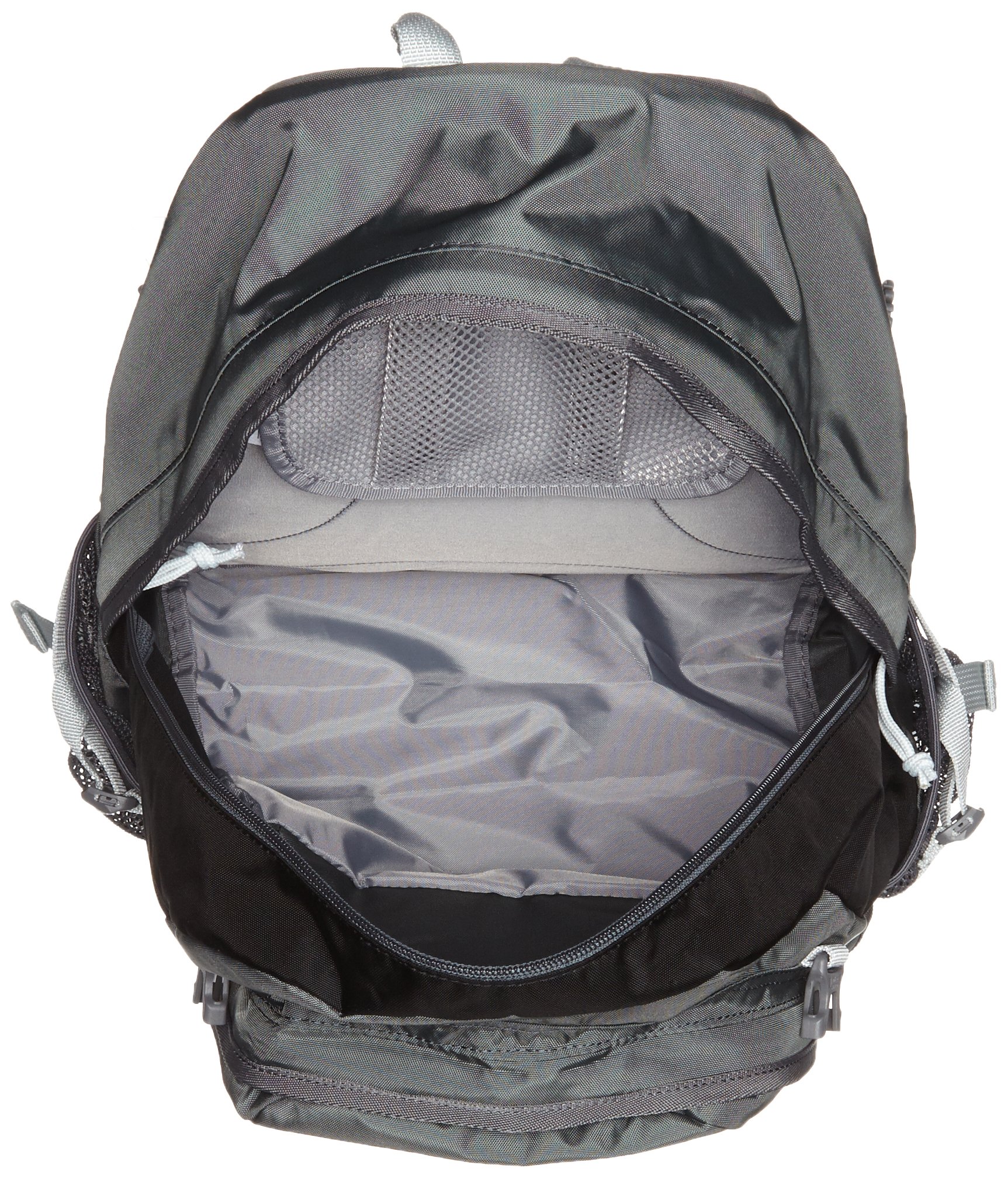 Two front zipper pockets convenient for storage of small items, inner zipper mesh pocket, side mesh pocket.