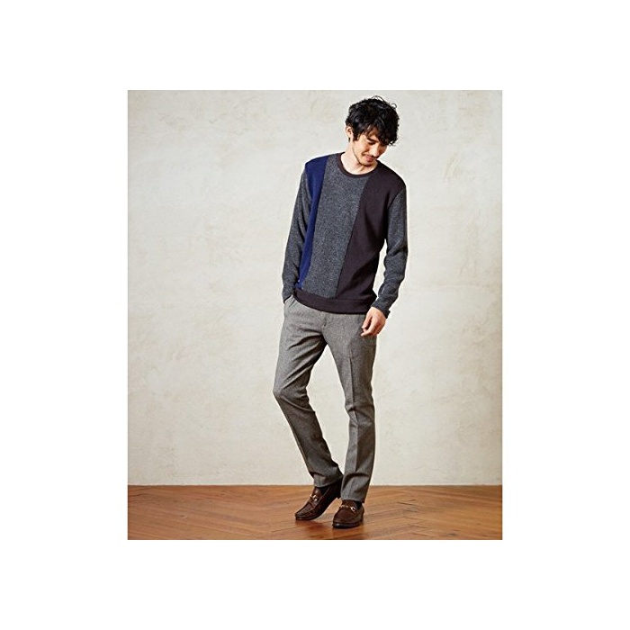 모르간 옴므(MORGAN HOMME) 컬러 blocking 니트 saw【네이비 23/L】