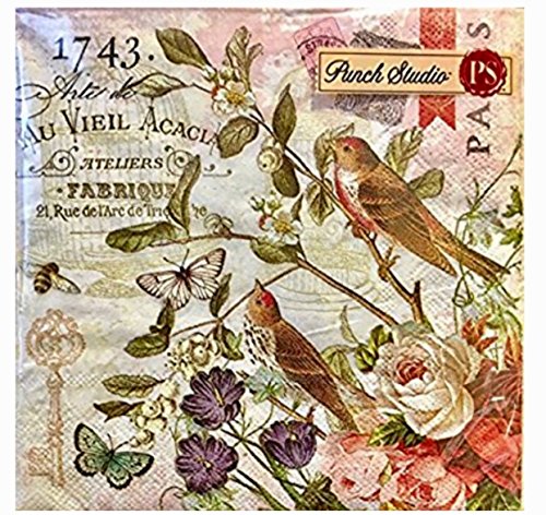 95901 Punch Studio Boutique 40 Ct Paper Cocktail Party / Beverage Napkins, Fleur de Triomphe Bird Cage Sparrow Floral