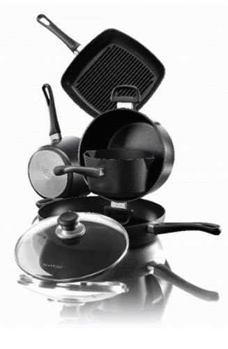 Scanpan combines the latest technology with elegant, functional design and old world craftsmanship to manufacture the ultimate non-stick cookware today. Made of pressure-cast aluminum with ceramic-titanium non-stick surface.