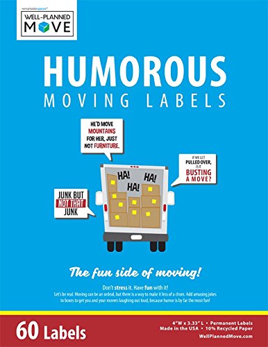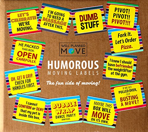 Well Planned Move - Humorous Moving Labels - Colored Labels with Funny Moving-Related Jokes and Sayings for Great Entertainment