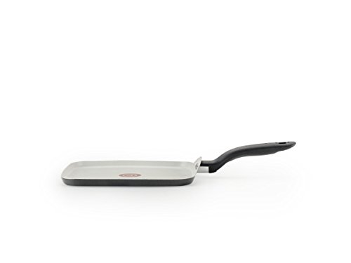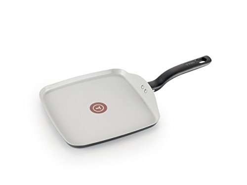 T-fal G90013 Specialty Ceramic Dishwasher Safe Oven Safe Square Griddle, 10.25", Black. Unique Thermo-Spot heat indicator. Extremely stain and scratch resistant, grey ceramic interior withstands heat up to 570 DegreeF. Ergonomically designed handle. Even heat base. Dishwasher safe; Oven safe to 350 DegreeF;.Feature