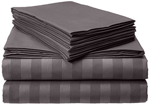 Elegant Comfort Best, Softest, Coziest STRIPE Sheets Ever! 1500 Thread Count Egyptian Quality Luxury Silky-Soft Wrinkle & Fade Resistant 4-Piece Bed Sheet Set, Deep Pocket Up to 16" -King Gray