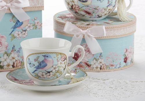(Delton)/Kitchen Dining/Tableware/DIRECT FROM USA/Porcelain Tea Cup and Saucer w/ Decorative Gift Box, Blue Bird