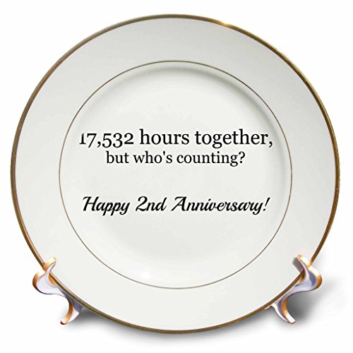 3dRose Happy 2nd Anniversary - 17532 hours together - Porcelain Plate, 8-inch (cp_224647_1)