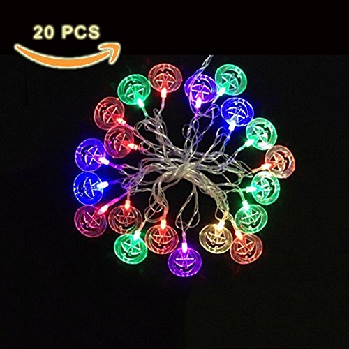 -. Feature : Halloween is approaching, this is one of the seasonal string lights you must have. Perfect to put inside ob beside your hallowee string lights / String lights of 20 lights on a well made cord. It uses 3 AA batteries and it has 2 different modes. Flashing and steady.(Batteries not include) / Using time: 40-60 hours. All hallowee string lights lights are made of a sturdy plastic so don`t worried about breaking them. Non-waterproof / Since the lights do not require a plug, they can be used anywhere and for any purpose. Better than normal solar string lights / This is definitely a cute addition to your halloween decor. The wire is clear so it'll blend in wherever. It's very light so its easy to hang up