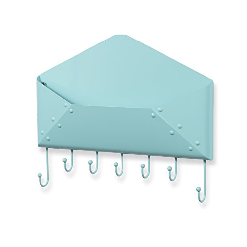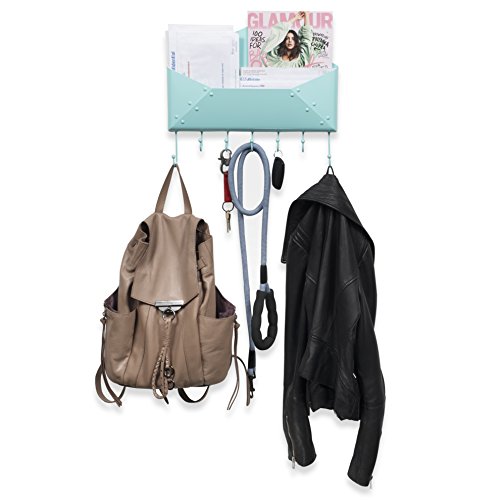 Space Saver: You don't need a shelf, basket or extra hooks to organize your entryway, you can do it with one-click, the hooks are durable enough to hold sufficient weight and the envelope compartment is large to hold magazines. Don't miss the opportunity to make an all-in-one, simple, functional, affordable and high-quality purchase. Get Rid of Clutter: When you can't find a solution to organize your piles of bills, letters, catalogs and other things your kitchen counter top can get cluttered leaving you no room to work around efficiently in your kitchen and no energy to cook. The organizer rack is perfect for keeping your counter top and kitchen drawers free of mess, clutter and your keys easy to find. Nifty Gift Idea: Create the perfect touch to the wall next to your door and help someone you love to do the same, it will make the perfect gift for a housewarming or Christmas. Don't miss an occasion or holiday and easily purchase your gift without breaking the bank or draining your energy. The Foyer/Entryway Organizer Rack Will Help You To: The practical solution to organizing your decent bundle of mail is at your service, you can keep your entryway, coffee table, kitchen counter top, desk and drawers neat, spacious and tidy all the time. Specifications: Material: Steel Color: Turquoise Product Dimensions: L 16" Envelope H Tallest Side 9" Envelope W 2" What is in the Package: (1) 16" Turquoise Foyer Organizer Rack with Hooks and Mounting Hardware. So click the Add to Cart Button NOW and Order Yours Today 0