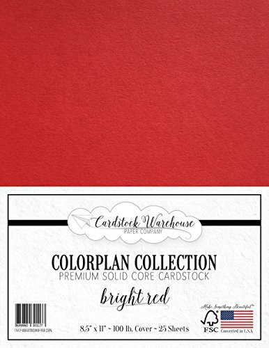 BRIGHT RED Cardstock 8.5" x 11" Premium 100 lb. Cover - 25 Sheets from Cardstock Warehouse
