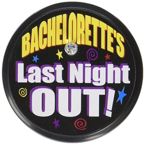 Studio : The Beistle Company Publisher : The Beistle Company Binding : Kitchen Product Description Beistle BL045 Bachelorette's Last Night Blinking Button. This colorful button says "Bachelorette's Last Night Out!". It is made of plastic and has a blinking light. This button measures 2 Inch. 0