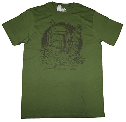 There's no job too big for this intergalactic bounty hunter! High-quality camo green t-shirt featuring Boba Fett from Star Wars.