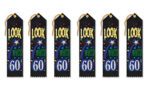 Beistle AR224 6-Pack Look Who's 60 Award Ribbon, 2-Inch by 8-Inch