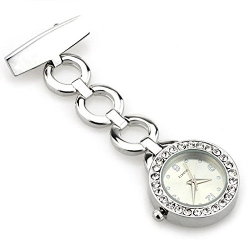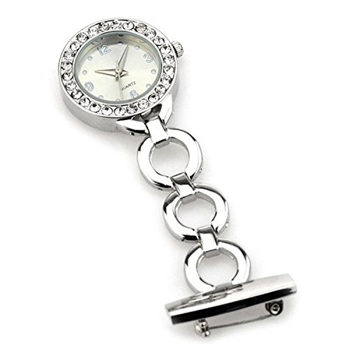 WZC Silver Quartz Movement Diamond Accented Nurses Lapel Pin Watch - Luminous Hands