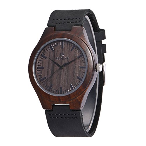 -. Title : Men's Bamboo Wooden Watch with Genuine Leather Strap Japanese Quartz Movement