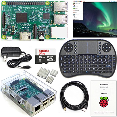 Raspberry Pi 3 Kit Quad-Core 1.2Ghz, Mini Keyboard, Raspbian Preinstalled, Transparent Case