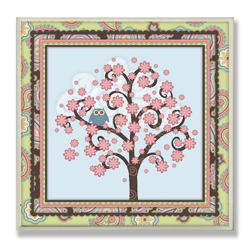 The Kids Room by Stupell Blue Owl in a Tree with Paisley Border Square Wall Plaque