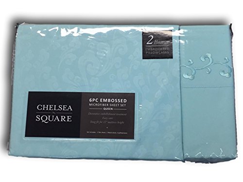6 Piece Embossed Microfiber Queen Sheet Set - Variety to Choose From (Aqua Paisley)
